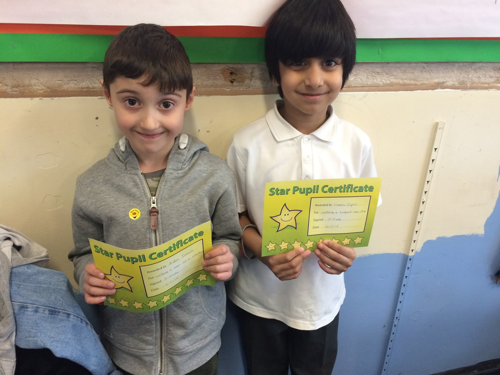 This weeks achievers are Hamza and Aiden. Aiden wrote a fantastic set of instructions on 'How to trap a Dragon' and Hamza created a super comic strip to retell the story of St. Patrick.